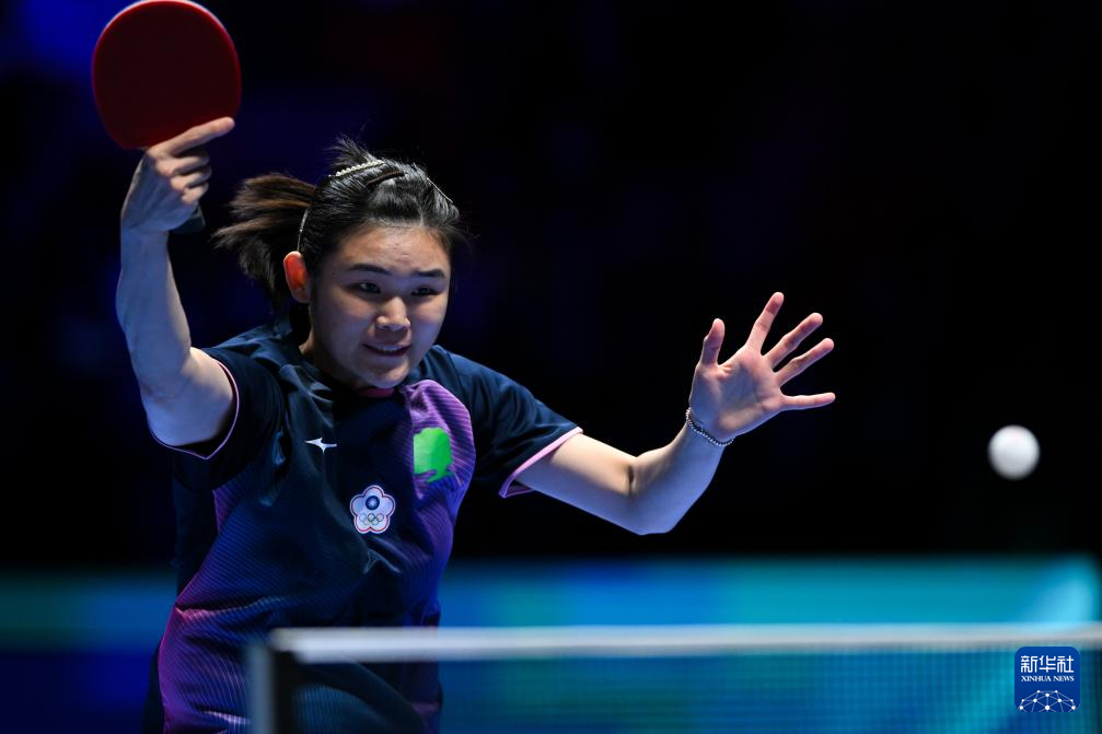 3月30日,中国选手孙颖莎在比赛中回球。