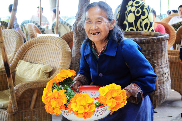 叫卖鲜花的老人