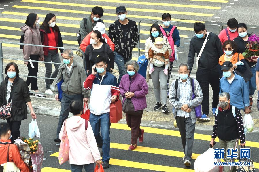 2月9日,香港市民佩戴口罩出行。新华社记者 卢炳辉 摄