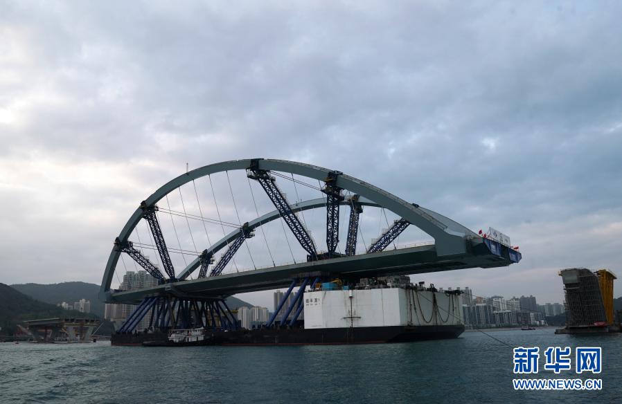 2月26日,将军澳跨湾大桥主桥顺利完成浮托安装,浮托安装总重达12000吨,总长214米,创造国内单体拱桥整体安装的新纪录。