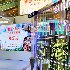 此次主题展展台外观通透明亮,内部搭配错落有致的霓虹招牌,还呈现香港古迹和香港街道的场景,让观众身在北京也能感受到香港丰富多元的都巿面貌,体验浓厚的“港风”。展览分为六大主题,包括“香港连接内地与世界的桥梁功能”“商贸金融和创新科技”“多元文艺发展”“荟萃古今中外文化的特色”“绿色城市风光”“京港合作交流”。展台还设有两个互动装置,以富有趣味的方式让参观者“连系”香港,并为香港送上祝福。