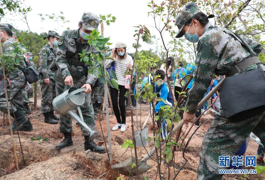 3月21日,驻澳门部队官兵在绿化周嘉年华活动中植树。新华社发(陈帅 摄)