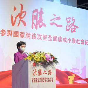 新华社香港3月23日电(记者韦骅)香港特区行政长官林郑月娥23日出席“决胜之路——港澳同胞参与国家脱贫攻坚全面建成小康社会纪实”展览开幕礼,庆祝国家在脱贫攻坚战中取得的重大胜利,同时肯定香港特区各界在这一过程中所作出的贡献和努力。