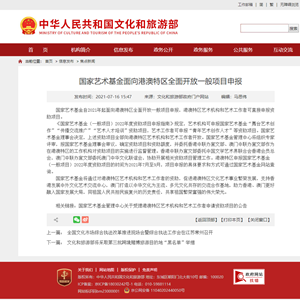 新华社北京7月17日电(记者余俊杰、周玮)记者17日从文化和旅游部获悉,国家艺术基金自2021年起面向港澳特区全面开放一般项目申报,港澳特区艺术机构和艺术工作者可直接申报资助项目。