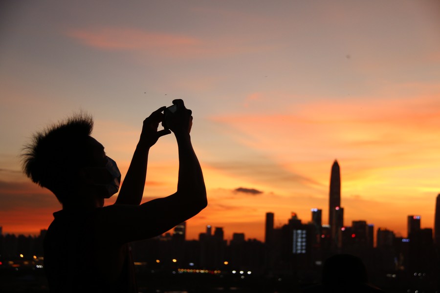 被问到为什么要花四五个小时来看一场日落,“老牛”望向前方的深圳福田,“我女朋友在那里,就在那幢最高的楼旁边的写字楼工作。”