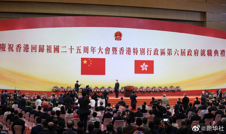 新华社快讯:习近平主席监誓,李家超宣誓就任香港特别行政区行政长官。(图片:新华社记者鞠鹏、丁海涛)