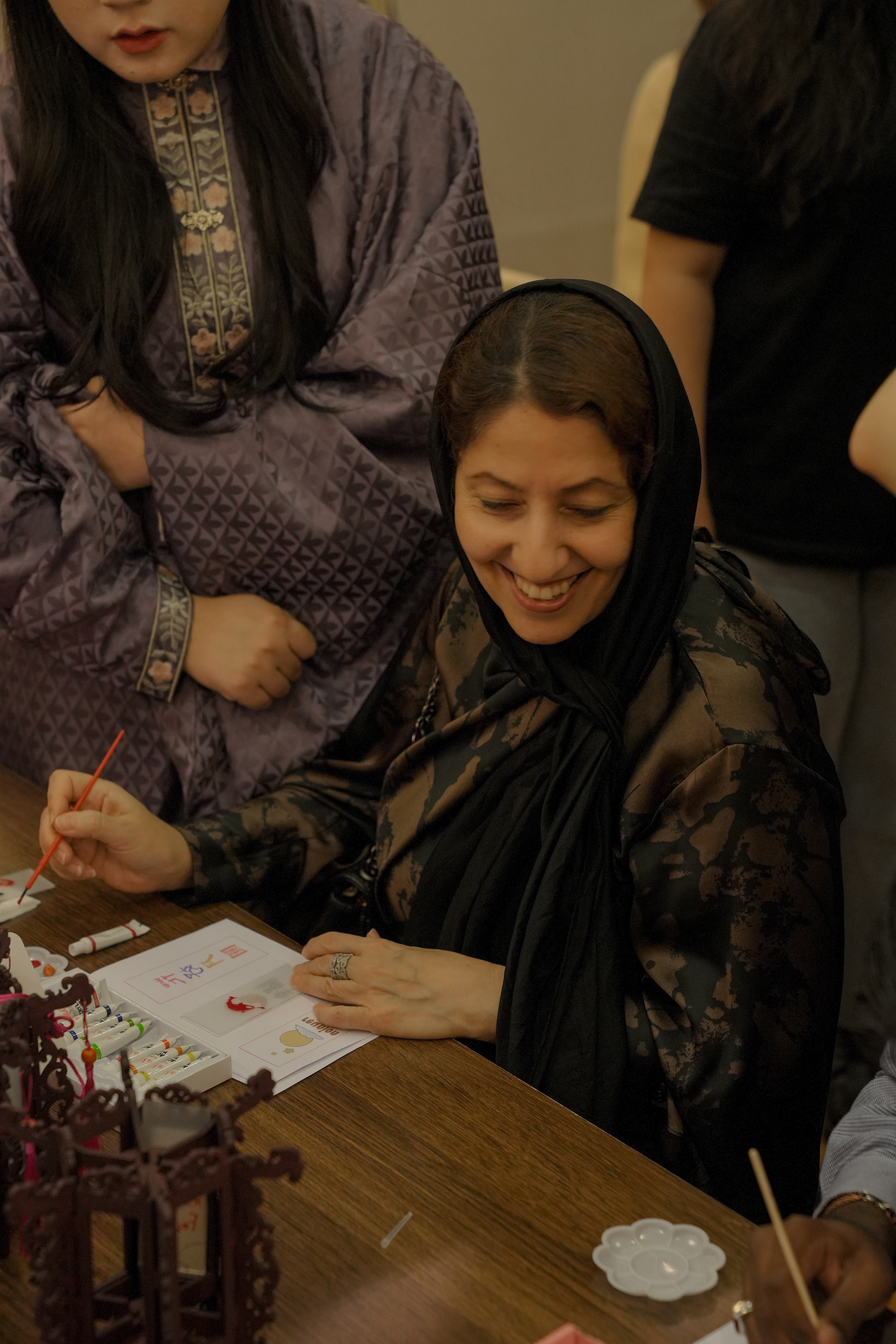 伊朗驻港领事馆代表Mrs. Zohreh Mirzaei 与其他领事代表一同学习制作中国传统宫灯,她表示活动非常有意义,很开心在香港能过上一个传统味十足的中秋。
