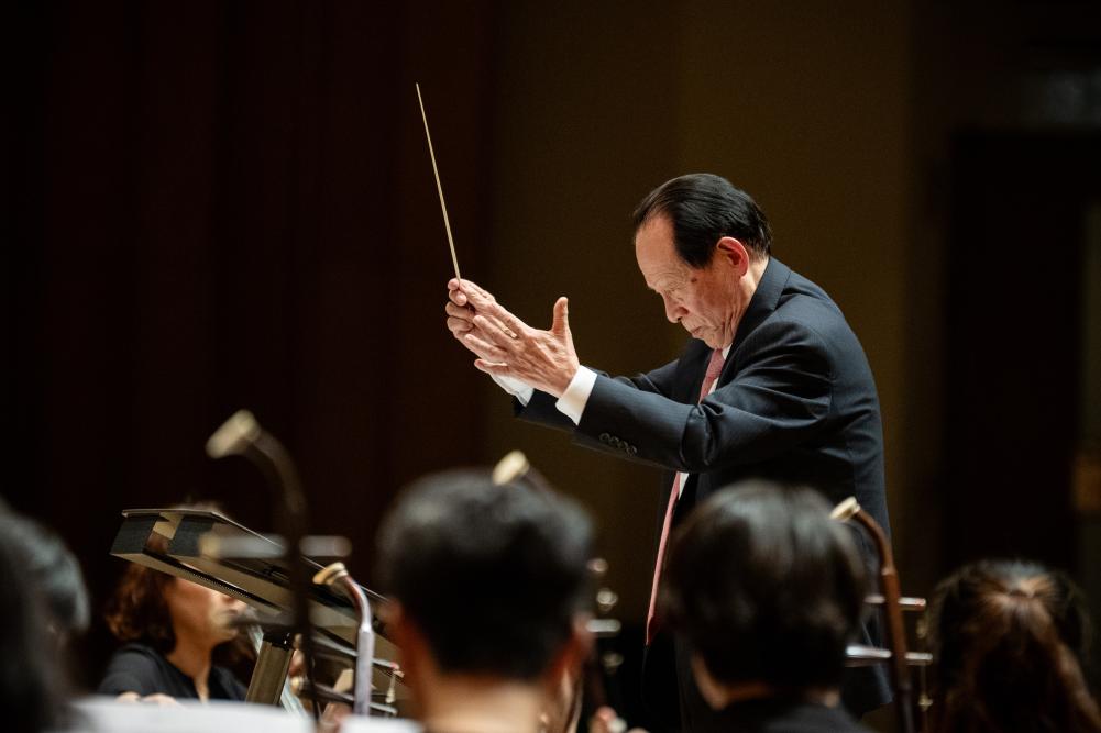 虽已鲐背之年,何占豪指挥时仍身板挺直,手势有力,且全程不看乐谱。这部他在26岁时参与创作的中国管弦乐经典名曲,早已融入了他的艺术生命。