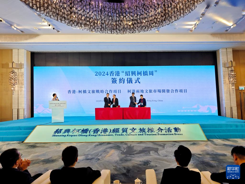 新华社香港3月6日电(记者褚萌萌)2024香港绍兴柯桥周经贸文旅推介会6日在港举行,来自香港特区与浙江省绍兴市柯桥区的有关单位在会上签署纺织数字智造、文旅开发、水处理系统等方面5个合作项目。