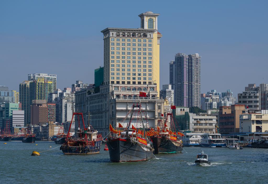 12月12日,庆祝中华人民共和国成立75周年暨澳门回归祖国25周年、澳门渔船大巡游启航仪式在澳门举行。新华社发