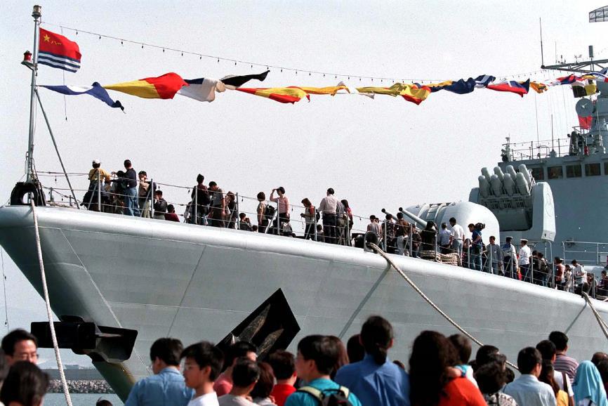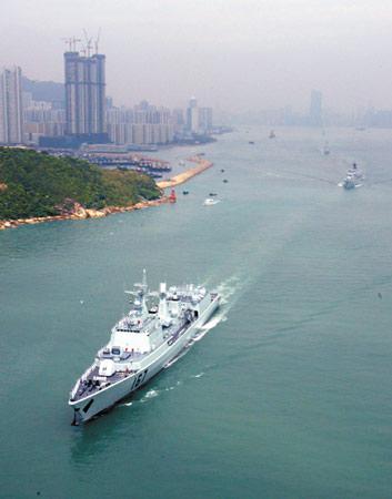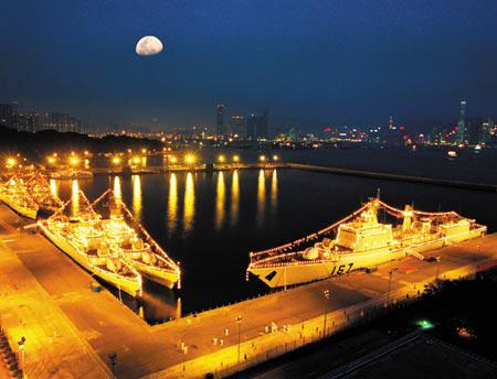 为纪念海军成立55周年,经中央人民政府批准,由8艘舰艇、2架舰载机组成的舰艇编队,于2004年4月30日至5月5日停靠香港昂船洲军港,向香港同胞展示人民海军现代化建设的雄姿风采。