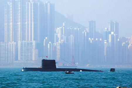 人民海军潜艇驶过维多利亚湾(《国际展望》杂志)