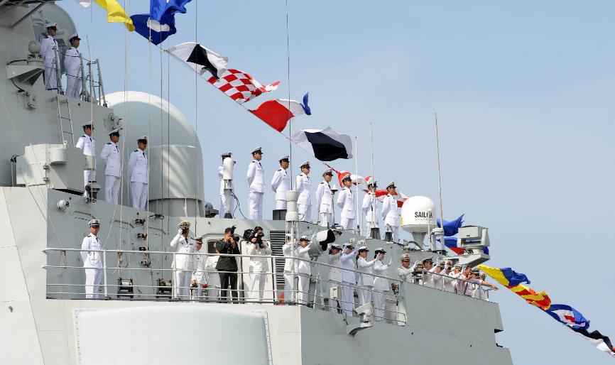 2012年4月30日拍摄的海口舰上的官兵。新华社记者赵宇思摄
