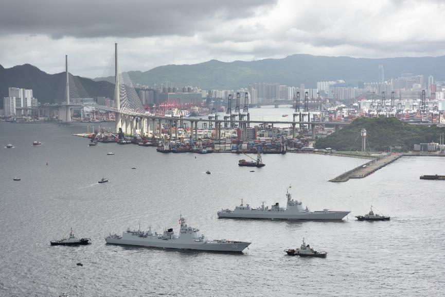 2017年7月7日, 正在执行跨区机动训练任务的中国人民解放军海军航母编队抵达香港,参加香港回归祖国暨中国人民解放军进驻香港20周年庆祝活动,受到香港特区政府和民众热烈欢迎。