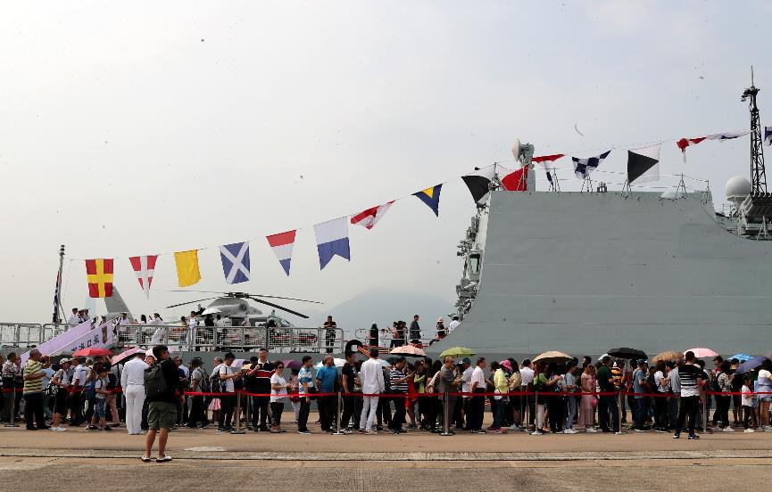 数千名香港市民来到昂船洲码头,参观中国人民解放军海军“深圳”号导弹驱逐舰。新华社记者薛东梅摄