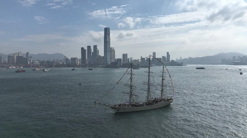 2024年11月18日,中国海军首艘风帆训练舰“破浪”号抵达香港。新华社发(江硕 摄)