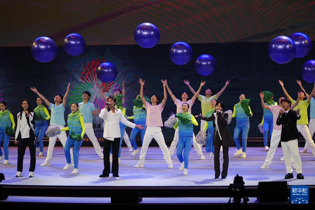 10月2日,众星在“紫荆花开 香满神州”国庆文艺晚会上演唱《我携山海等你来》。新华社发(王申摄)