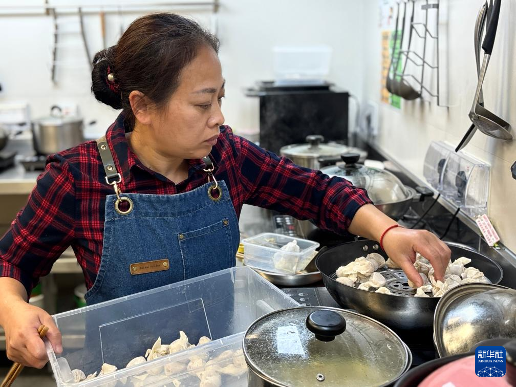 2月6日,一名义工在香港深水埗东社区客厅的厨房将包好的云吞放入蒸锅。新华社发(许淑敏 摄)