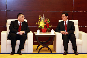 胡锦涛会见澳门特区新任行政立法司法机关负责人