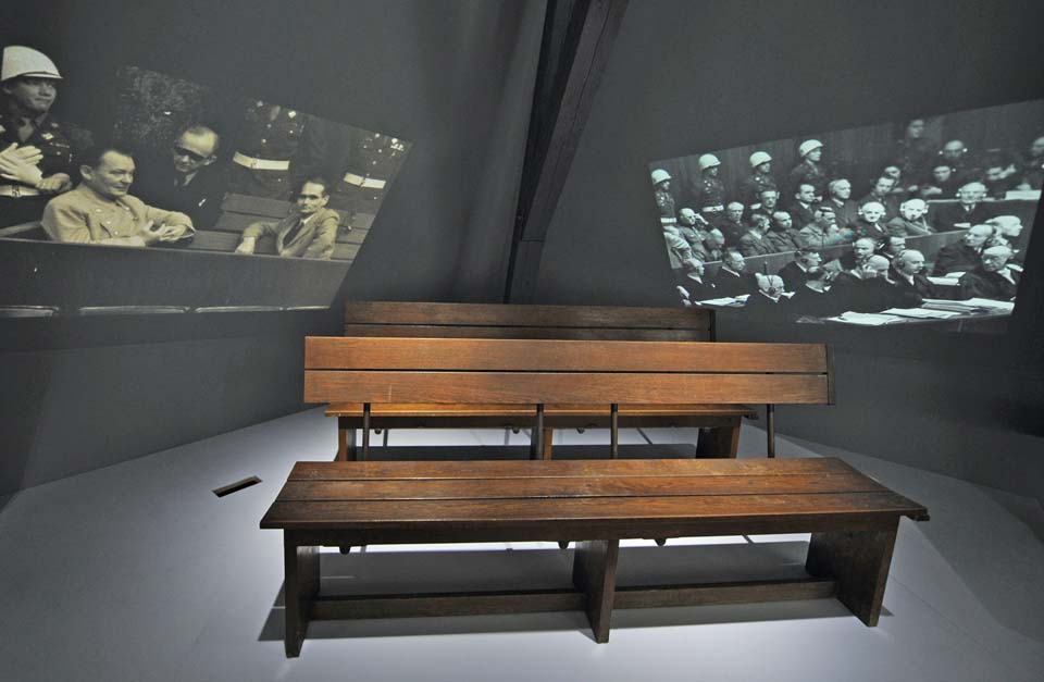 在徳国纽伦堡,纽伦堡审判新博物馆里收藏的所用的被告席