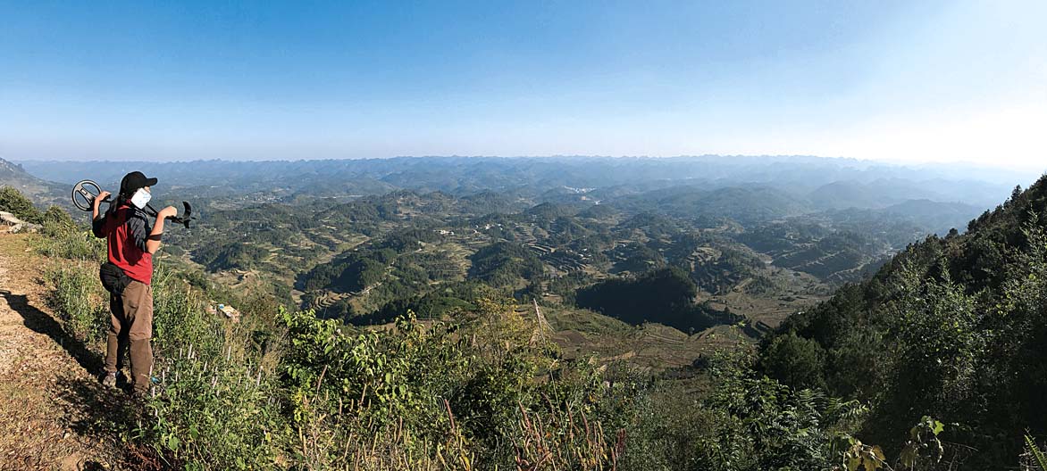 2018年11月,张勃在山顶俯瞰明朝南丹陨石陨落带