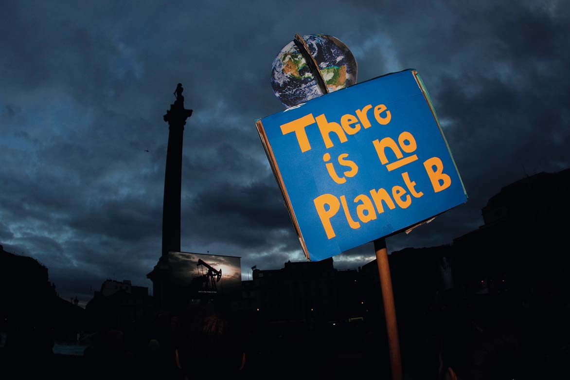 11月6日,人们在英国伦敦特拉法加广场参加集会,号召为应对气候变化采取更多行动