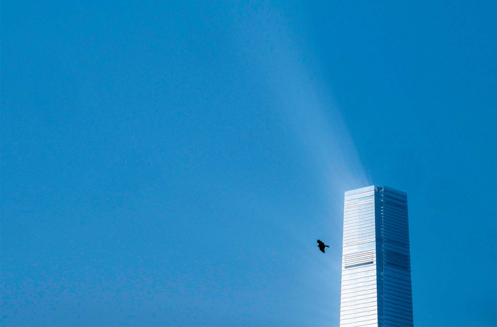 2021年3月,一只鸟飞过香港贸易中心