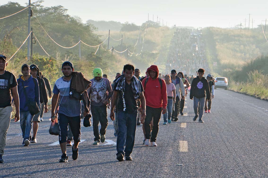 2021年11月11日,在墨西哥瓦哈卡,试图北上前往美国的移民走在一条公路上