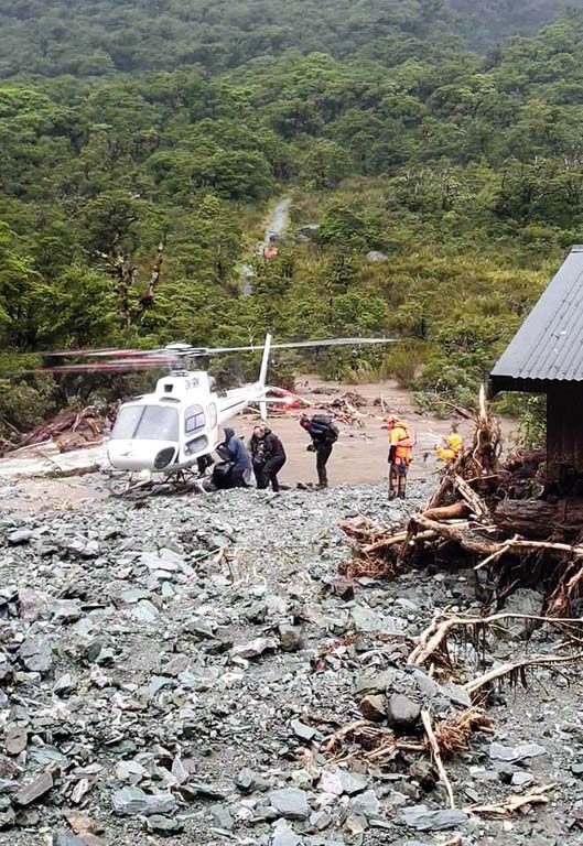2020年2月3日,在新西兰南岛的路特本步道,受困的徒步者登上救援直升机