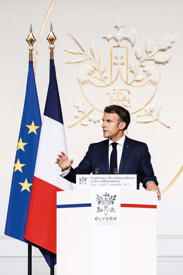 9月1日,法国总统马克龙在巴黎举行的法国驻外使节会议上发表讲话