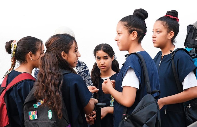 9月15日,在突尼斯首都突尼斯市,学生在一所学校门口集合准备入校上课