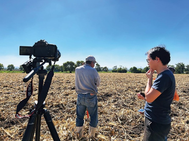 赫苏斯身后的玉米田连着灰蒙蒙的天空,尽头是冒火的炼油厂;空气中弥漫着烧秸秆和石油混杂的味道。油罐车疾驰在公路上驶向全国各地与油价赛跑,皮卡则满载农作物摇摇晃晃地行进在田间小道上。