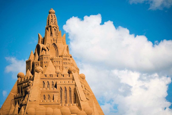 2021年7月7日在丹麦布洛克胡斯拍摄的世界最高沙堡