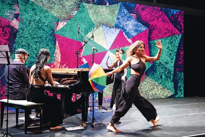 图为当天巴西钢琴交响乐团成员在巴西里约热内卢举行的开播仪式上表演