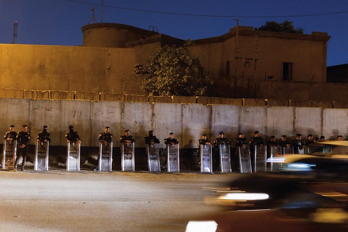 2022年7月20日,在伊拉克首都巴格达,防暴警察在土耳其驻伊拉克大使馆外警戒