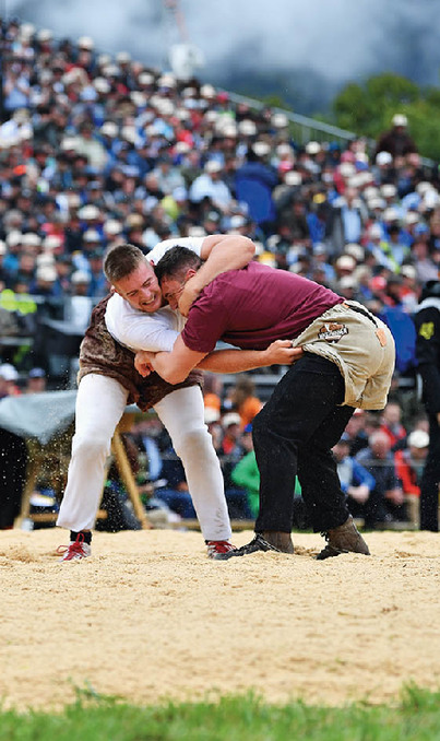 牧羊人节的重头戏是阿尔卑斯传统摔跤和圆石投掷比赛,堪称威武彪悍的阿尔卑斯勇士的节日。