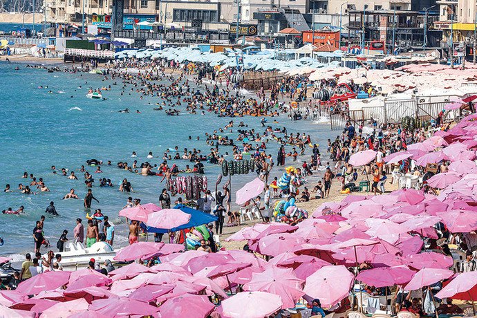在埃及大部分地区遭受高温炙烤时,马特鲁港、阿拉曼等地中海沿岸城市的最高气温仍维持在30摄氏度上下,北部海岸地区成为埃及民众消夏避暑的首选。