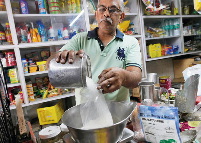 2022年5月25日,在印度孟买,一名商贩为顾客装糖