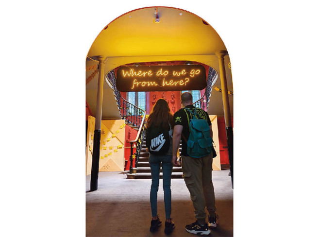 观众经过写有本次爱丁堡国际艺术节主题的楼梯