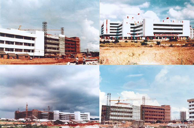 回望粤海门,甘苦寸心知。深大创造的另一个“深圳速度”是位于粤海门的新校舍建设,即深大首期工程。1984年1月26日,小平同志离开深圳去珠海途经粤海门,时任深圳市委书记、市长梁湘向他介绍,深大第一期工程计划于当年8月竣工交付使用,9月间搬至新校址教学。小平同志随着梁湘的手势一看,眼前的却是一片荒滩野岭,便问道:“深圳大学今年能搬到这儿来开学?”“是的,今年秋天新学年,深大的师生们就要到这里上课了。”梁湘答道。