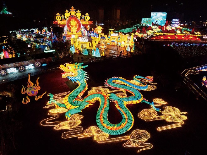 1月26日,在四川省自贡市中华彩灯大世界举办的第30届自贡国际恐龙灯会亮灯