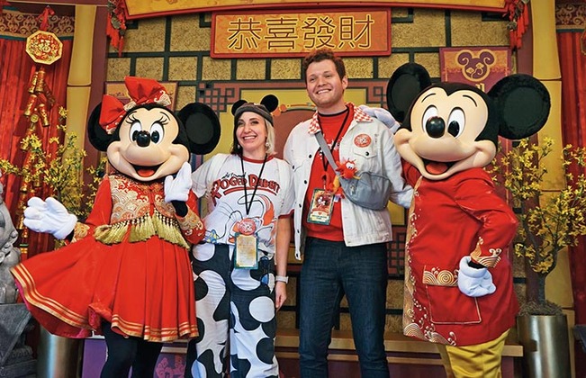 1月20日,在美国加利福尼亚州的迪士尼冒险乐园,人们在庆祝农历新年活动上合影留念