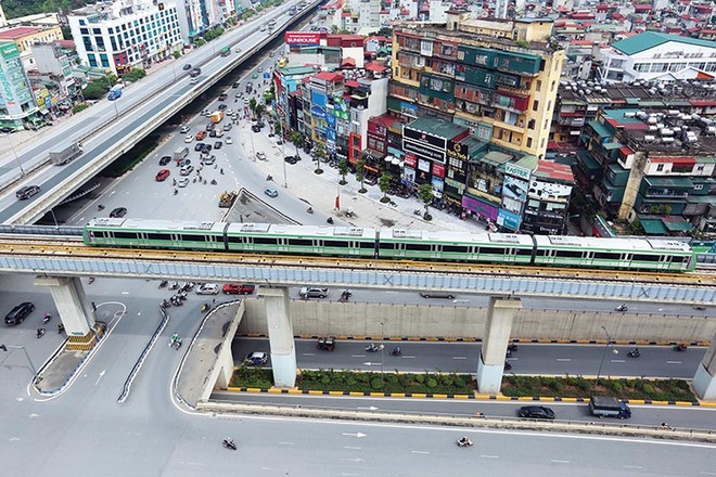 2021年11月6日,列车在越南首都河内吉灵- 河东轻轨线上行驶
