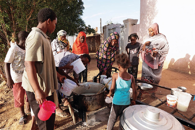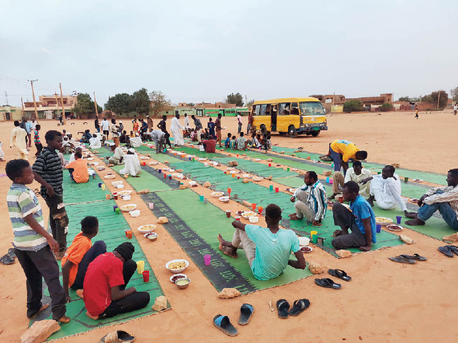 3月17日,在苏丹首都喀土穆,因当地武装冲突而流离失所的民众正在享用集体开斋饭