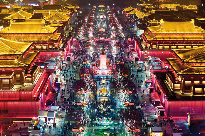 这是2月2日拍摄的西安大唐不夜城景色(无人机照片)