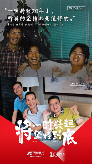 两张照片,三个理工男,同样的动作同样的笑容,25年创业的光阴将片中人的身形和脸庞修饰得略有不同。