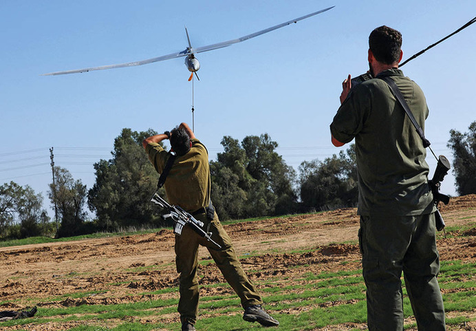 2023年12月30日,在以色列南部,以军士兵操纵一架战术无人机