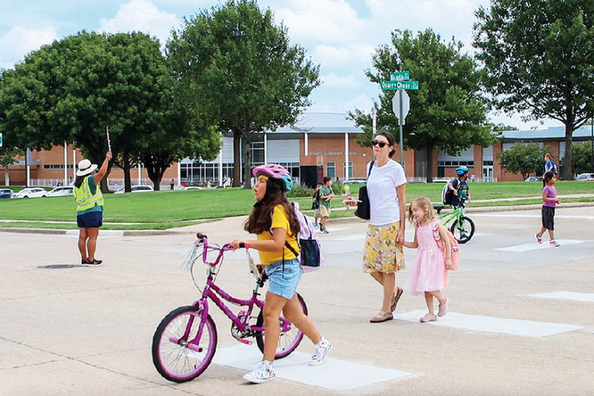 2022年8月31日,在美国得克萨斯州普莱诺市,一所小学的学生与家长一起回家