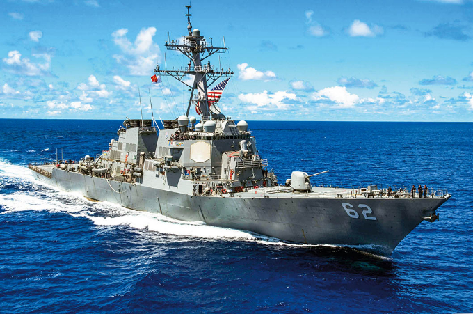 这是2014年9月8日在太平洋海域拍摄的美国海军第七舰队“菲茨杰拉德”号驱逐舰的资料照片