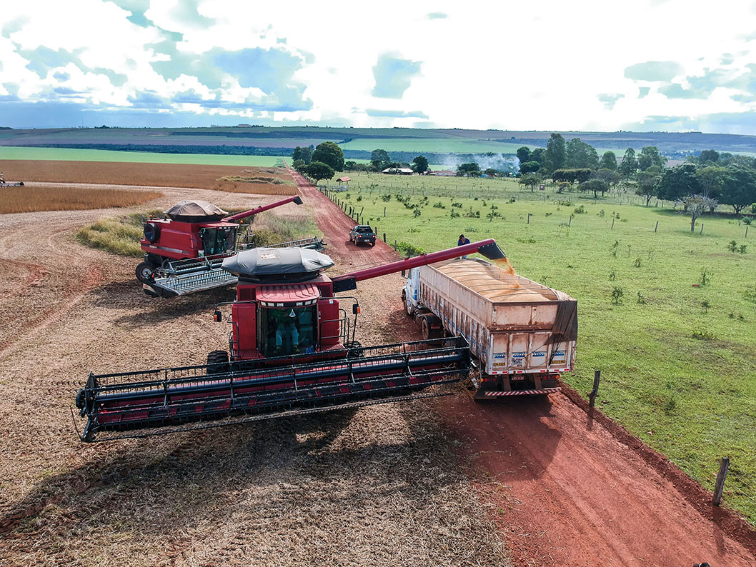 在巴西戈亚斯州班德里尼亚农场,农机进行收获大豆作业。巴西目前是世界上最大的大豆生产国和出口国